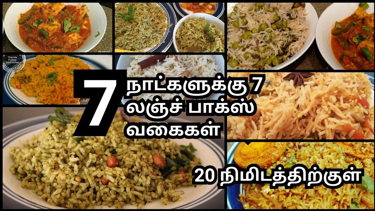 7 Indian Lunch Box Ideas | 20 mins lunch box recipes | 7 variety rice | Quick Lunch Box in tamil November 8, 2018 Quick And Healthy Comments Off on 7 Indian Lunch Box Ideas | 20 mins lunch box recipes | 7 variety rice | Quick Lunch Box in tamil